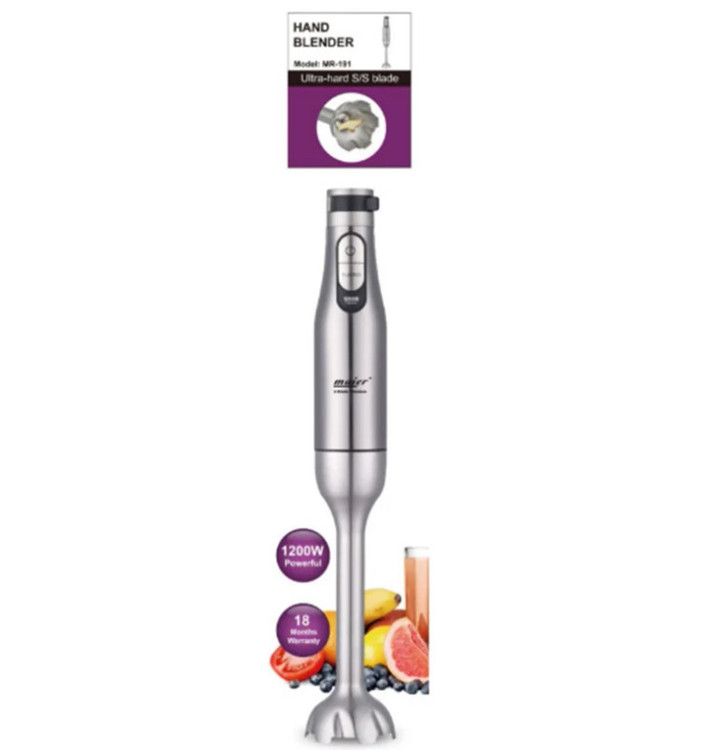 گوشت کوب برقی مایر مدل MR-191 به صورت تک کاره روانه باز شده این محصول با کیفیت از بدنه ای محکم و با دوام بهره می برد که می تواند سال های طولانی مورد استفاده قرار گیرد. بدنه گوشت کوب مایر از استیل ضد زنگ ساخته شده که کیفیت ساخت این محصول را تضمین می کند. موتور قدرتمند این گوشت کوب از توان 1200 وات بهره می برد که به خوبی عمل له کردن و خرد کردن مواد را به انجام می رساند.تعداد 2 سطح تنظیمات قدرت یکی از مزیت های خوب خوش کوب برقی مایر 191 به شمار می آید که کاربر می تواند با توجه به مواد به سفتی و نرمی مواد به تنظیم سرعت بپردازد. گوشت کوب تک کاره مایر به عملکرد لحظه ای « Pulse » مجهز شده که بهترین نتیجه را برای کاربران فراهم می سازد. اگر می خواهید از نهایت سرعت گوشت کوب بهره برید می تواند از عملکرد توربو « Turbo » استفاده نمایید و در مدت زمان کمی به خرد و له کردن مواد بپردازید. تعداد تیغه های گوشت کوب دو پره می باشد که از جنس استیل ضد زنگ بهره می برد