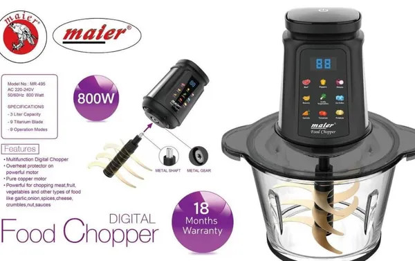 خردکن **مایر مدل MR-495** با طراحی مدرن و قابلیتهای پیشرفته، ابزاری کارآمد برای آمادهسازی سریع و آسان مواد غذایی در آشپزخانه است. این دستگاه با توان ۸۰۰ وات و تیغههای تیتانیومی، عملکردی قدرتمند و مؤثر را ارائه میدهد.